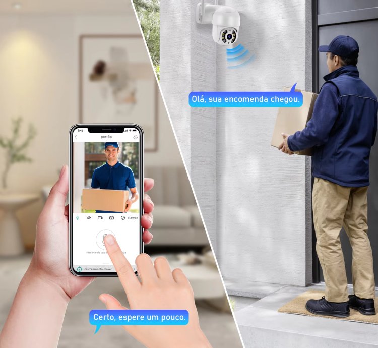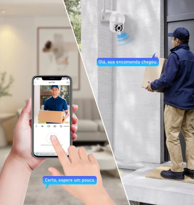 ▶【Intercomunicador de voz bidirecional】: Nossa câmera de alta definição tem microfone e alto-falante integrados que possibilita intercomunicação de voz bidirecional. Isso permite que você se comunique remotamente com visitantes externos através do aplicativo móvel