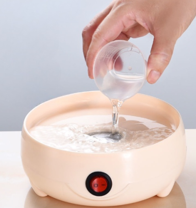 Passo 1: Coloque no copo medidor a quantidade de água para atingir o ponto do ovo que deseja.