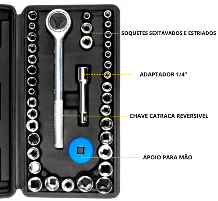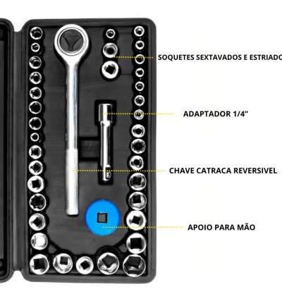 - 1 Estojo Ferramentas Chave Catraca Bits Adaptador 40 Pçs Sparta