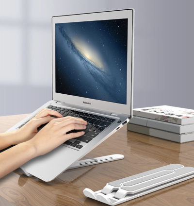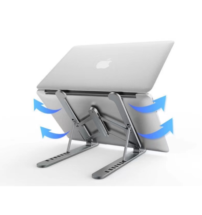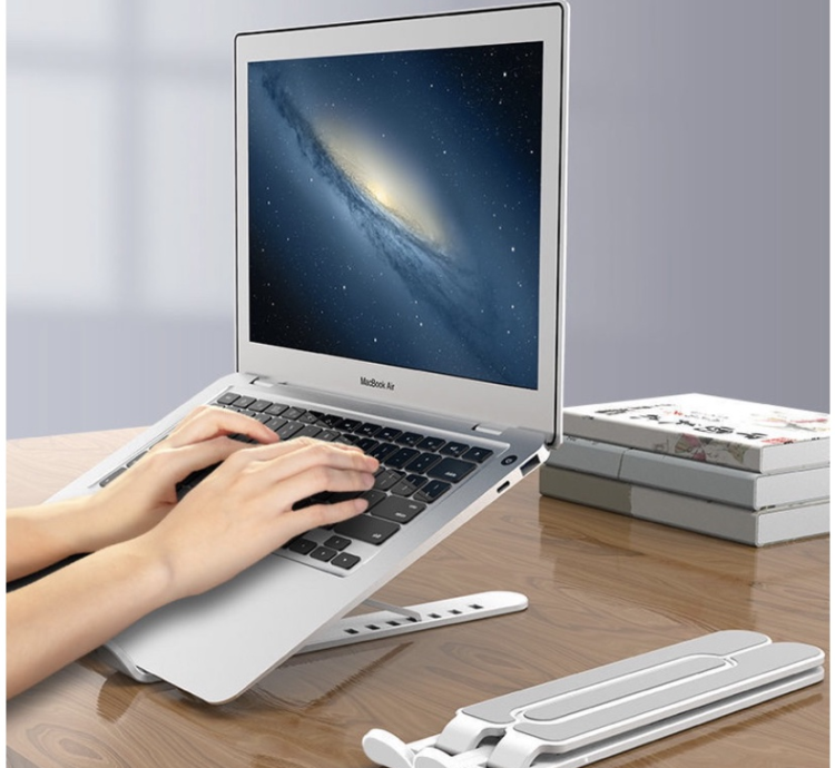 Suporte para Notebook Compacto, Portátil, Retrátil, Antiderrapante com 6 Níveis de Ajuste de Altura.